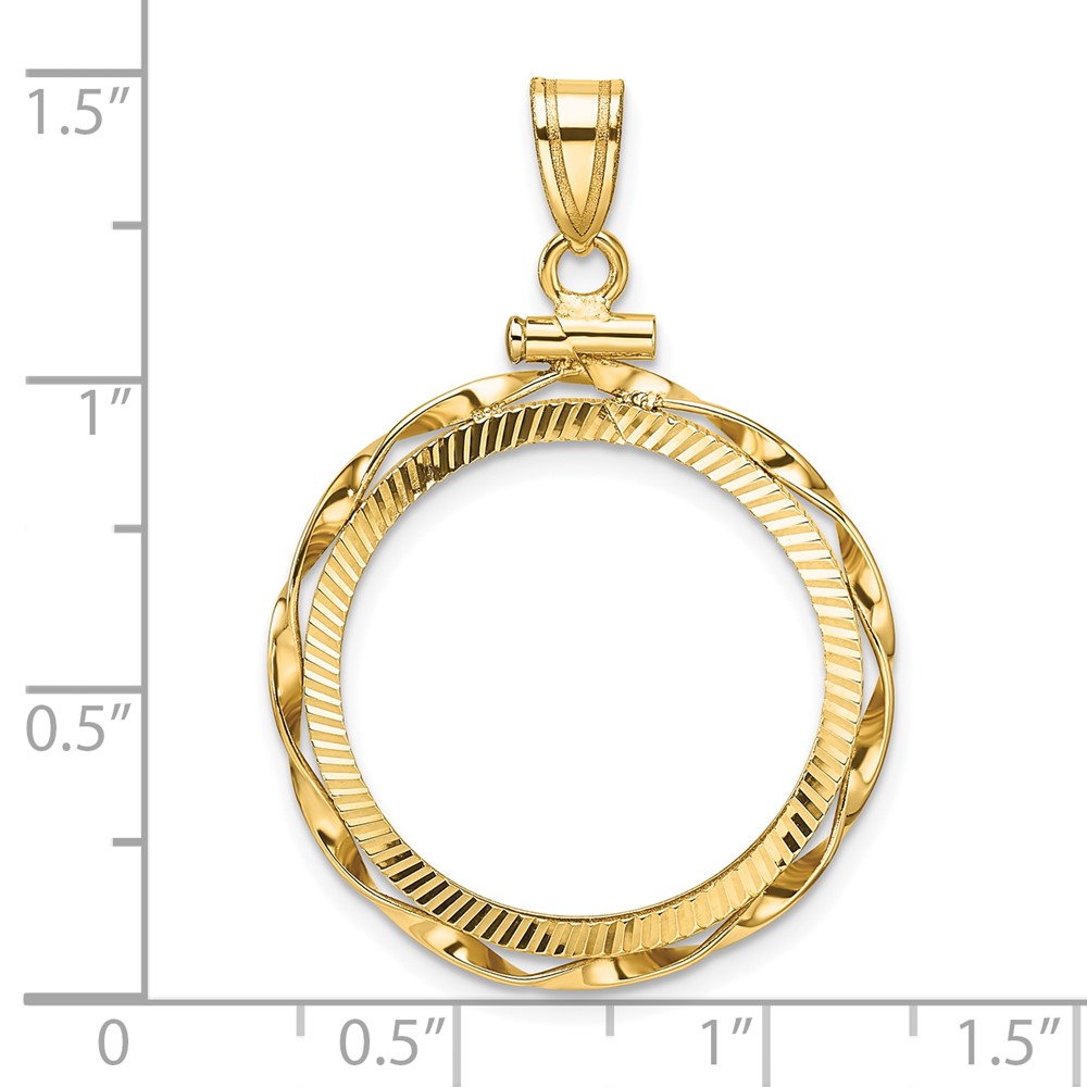 Wideband Distinguished Coin Jewelry 14k Polished Hand Twisted Ribbon and Diamond-cut 21.6mm x 1.7mm Screw Top Coin Bezel Pendant