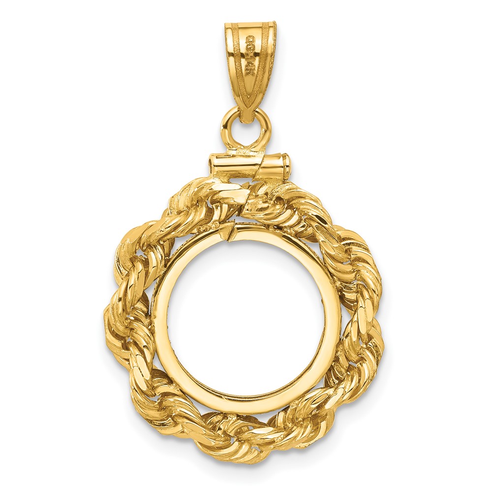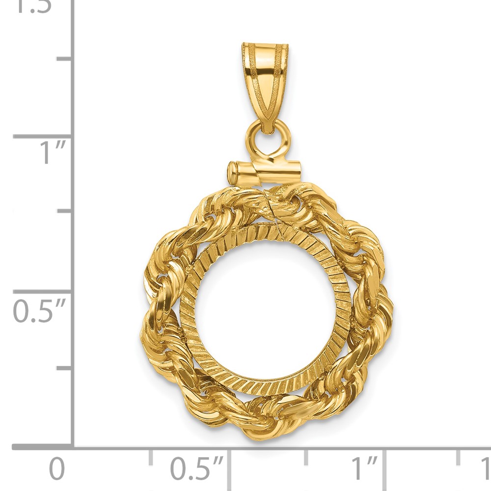 Wideband Distinguished Coin Jewelry 14k Polished Rope and Diamond-cut 13.0mm x 1.1mm Screw Top Coin Bezel Pendant