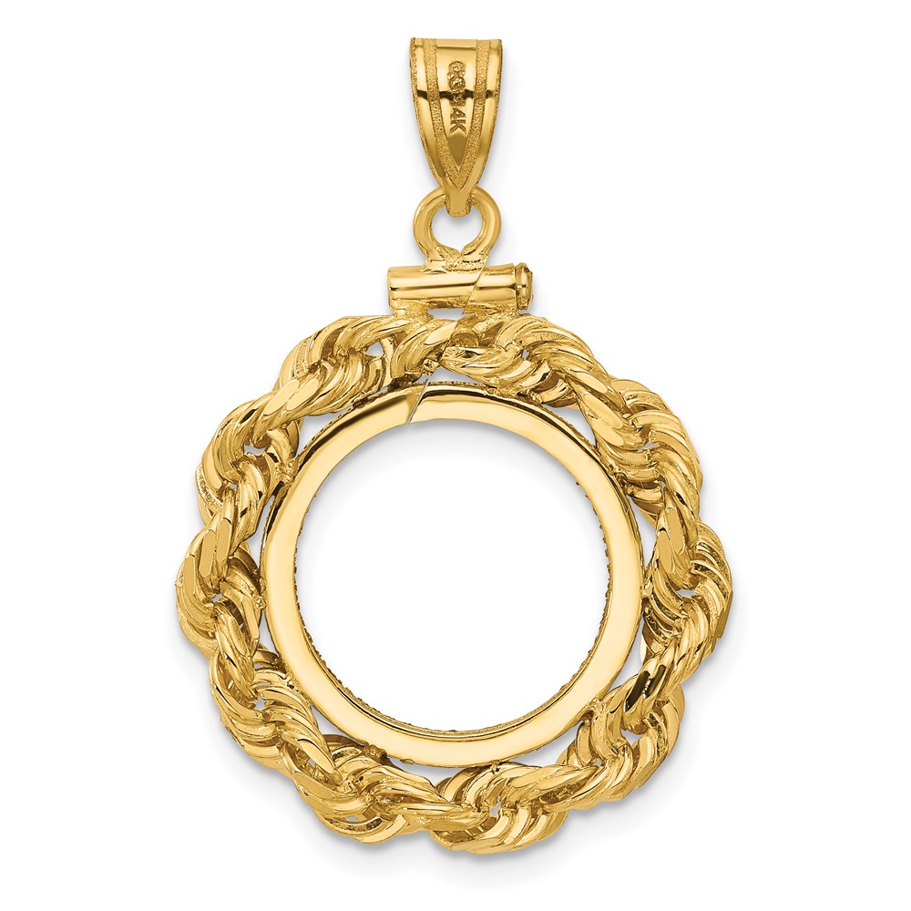 Wideband Distinguished Coin Jewelry 14k Polished Rope and Diamond-cut 15.0mm x 0.8mm Screw Top Coin Bezel Pendant
