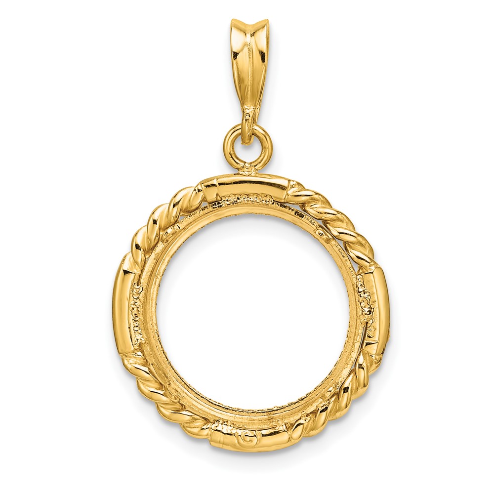 Wideband Distinguished Coin Jewelry 14k Polished Quadruple Twist and Diamond-cut 15.0mm Prong Coin Bezel Pendant