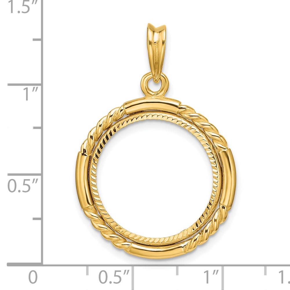 Wideband Distinguished Coin Jewelry 14k Polished Quadruple Twist and Diamond-cut 17.8mm Prong Coin Bezel Pendant