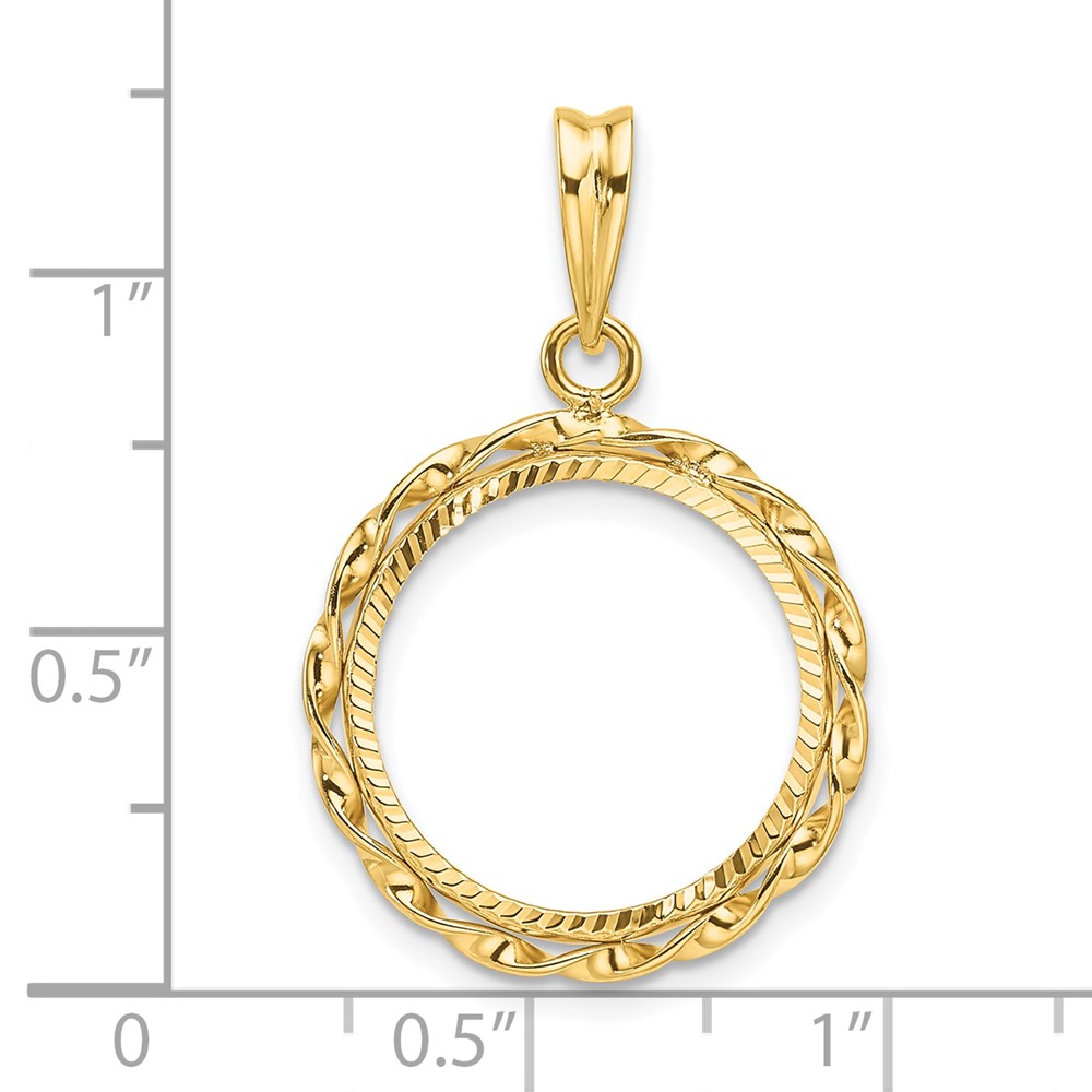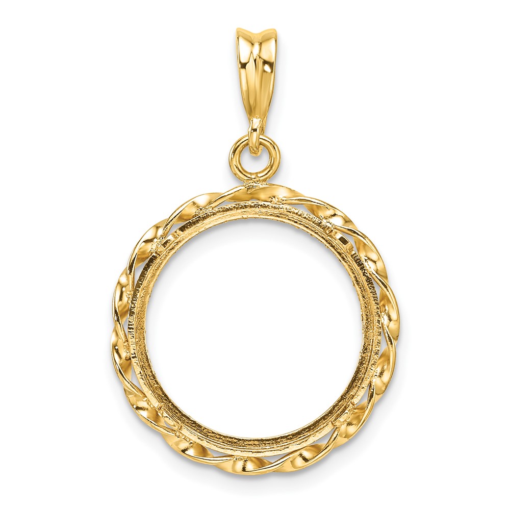 Wideband Distinguished Coin Jewelry 14k Polished Hand Twisted Ribbon and Diamond-cut 16.0mm Prong Coin Bezel Pendant