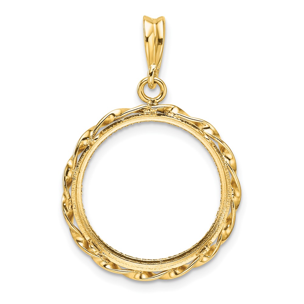 Wideband Distinguished Coin Jewelry 14k Polished Hand Twisted Ribbon and Diamond-cut 18.0mm Prong Coin Bezel Pendant