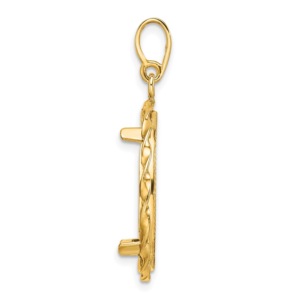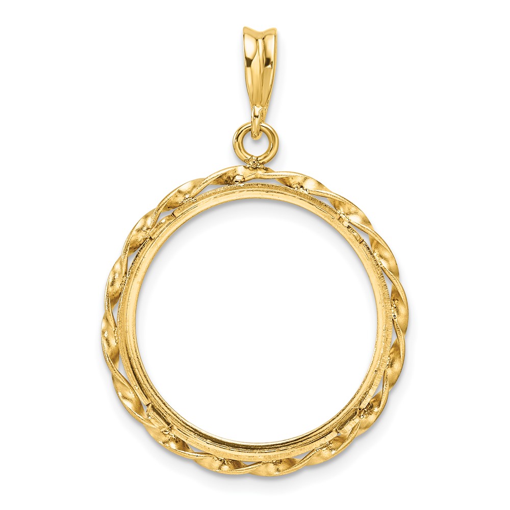 Wideband Distinguished Coin Jewelry 14k Polished Hand Twisted Ribbon and Diamond-cut 20.0mm Prong Coin Bezel Pendant