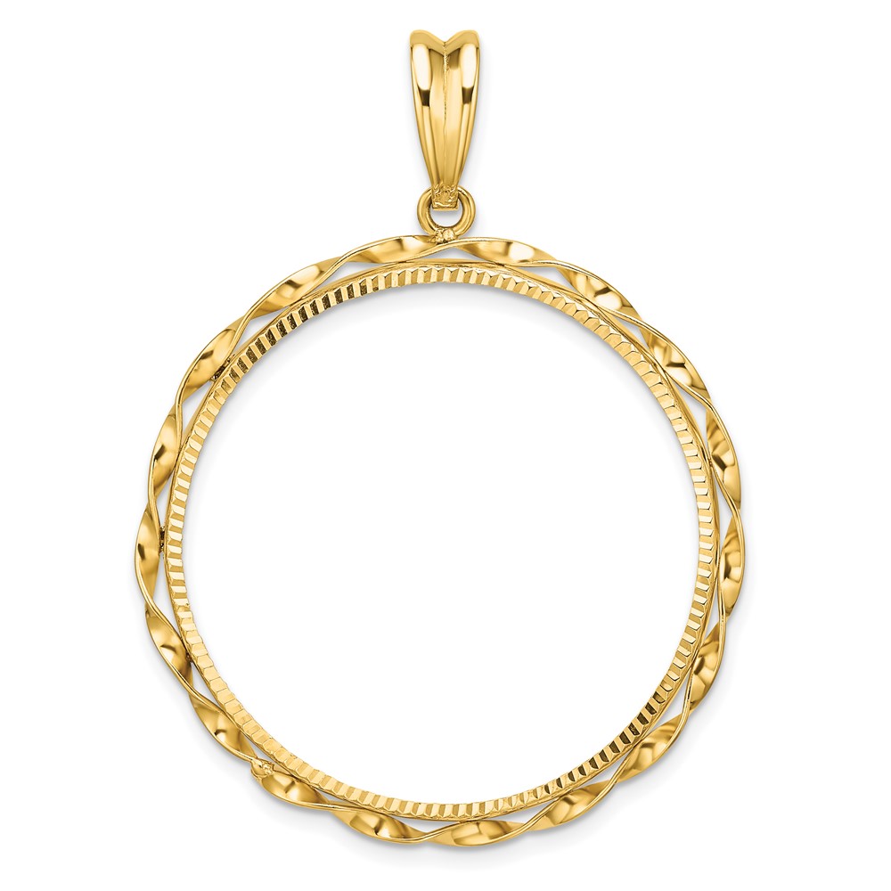 Wideband Distinguished Coin Jewelry 14k Polished Hand Twisted Ribbon and Diamond-cut 32.0mm Prong Coin Bezel Pendant