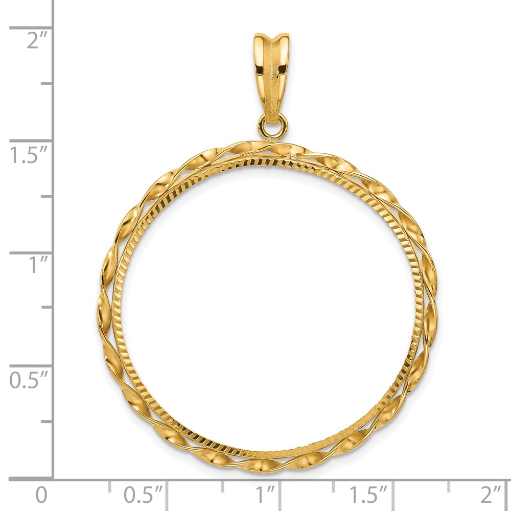 Wideband Distinguished Coin Jewelry 14k Polished Hand Twisted Ribbon and Diamond-cut 34.2mm Prong Coin Bezel Pendant