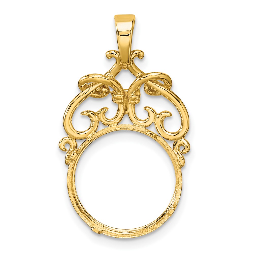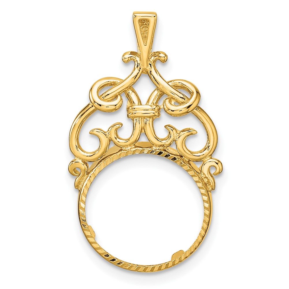 Wideband Distinguished Coin Jewelry 14k Polished Fancy Filigree Top and Diamond-cut 13.0mm Prong Coin Bezel Pendant
