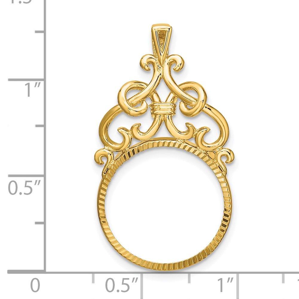 Wideband Distinguished Coin Jewelry 14k Polished Fancy Filigree Top and Diamond-cut 16.5mm Prong Coin Bezel Pendant