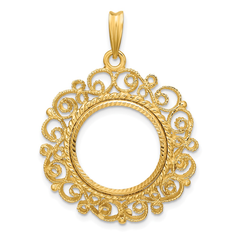 Wideband Distinguished Coin Jewelry 14k Polished Textured and Diamond-cut Victorian 16.0mm Prong Coin Bezel Pendant