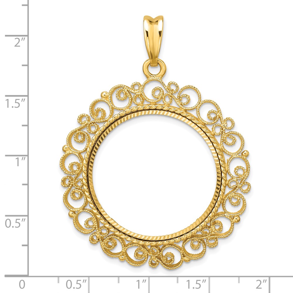 Wideband Distinguished Coin Jewelry 14k Polished Textured and Diamond-cut Victorian 27.0mm Prong Coin Bezel Pendant