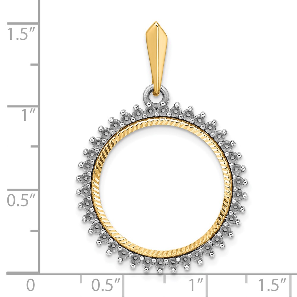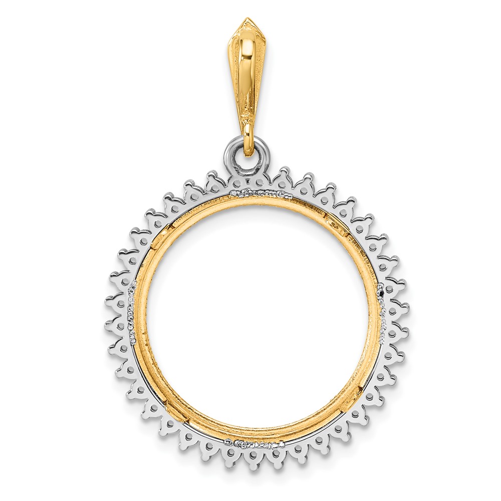 Wideband Distinguished Coin Jewelry 14k Two-tone Polished and Diamond-cut Diamond Circle 20.1mm Prong Coin Bezel Pendant Mounting