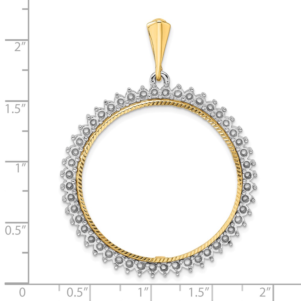 Wideband Distinguished Coin Jewelry 14k Two-tone Polished and Diamond-cut Diamond Circle 32.7mm Prong Coin Bezel Pendant Mounting