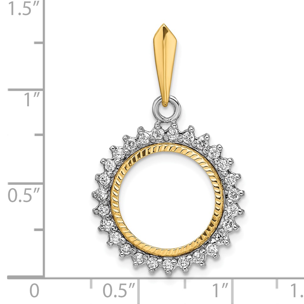 Wideband Distinguished Coin Jewelry 14k Two-tone Polished and Diamond-cut VS Diamond Circle 14.0mm Prong Coin Bezel Pendant
