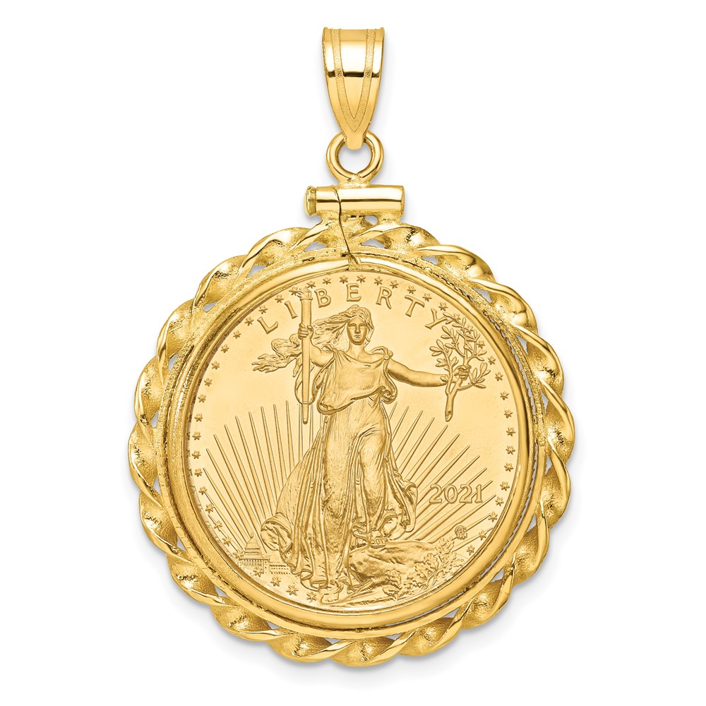Wideband Distinguished Coin Jewelry 10k Polished Wide Twisted Wire Mounted 1/4oz American Eagle Screw Top Coin Bezel Pendant