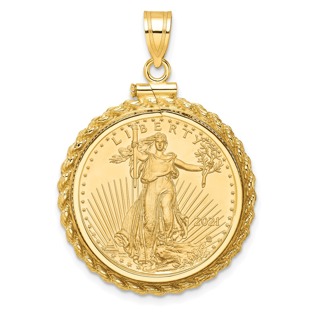 Wideband Distinguished Coin Jewelry 10k Polished Casted Rope Mounted 1/4oz American Eagle Screw Top Coin Bezel Pendant