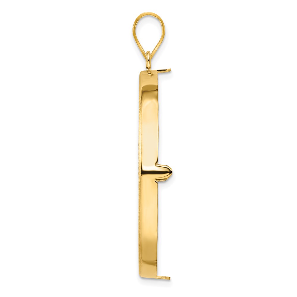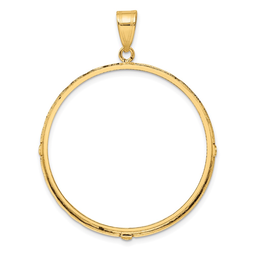 Wideband Distinguished Coin Jewelry 14k Polished and Diamond-cut 37.0mm Prong Coin Bezel Pendant