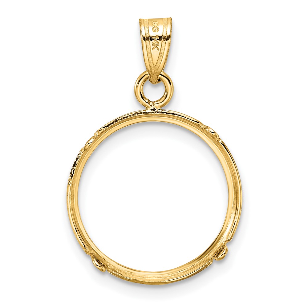 Wideband Distinguished Coin Jewelry 14k Polished and Diamond-cut 15.0mm Prong Coin Bezel Pendant