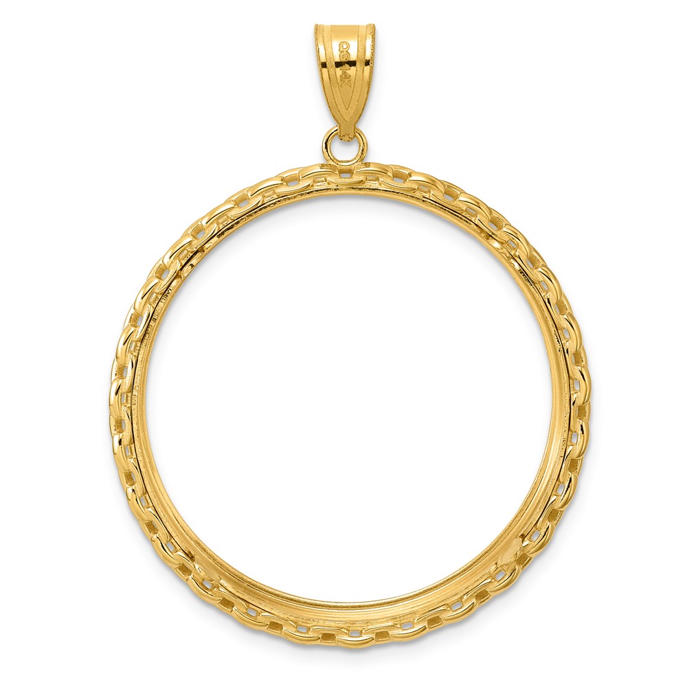 Wideband Distinguished Coin Jewelry 14k Polished Twisted Edge with Geometric Top 16.5mm Prong Coin Bezel Pendant