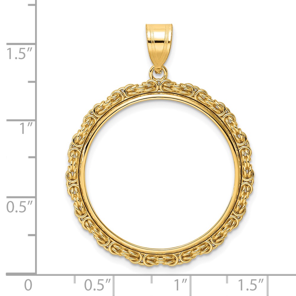 14k Polished Byzantine Link with 27.0mm Prong Coin Bezel Pendant