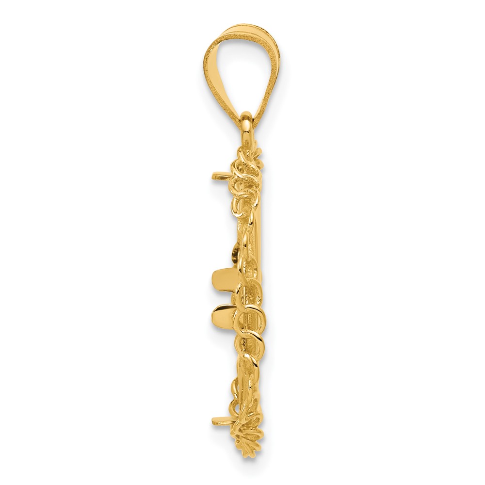 14k Polished Twisted Ring with 16.5mm Prong Coin Bezel Pendant