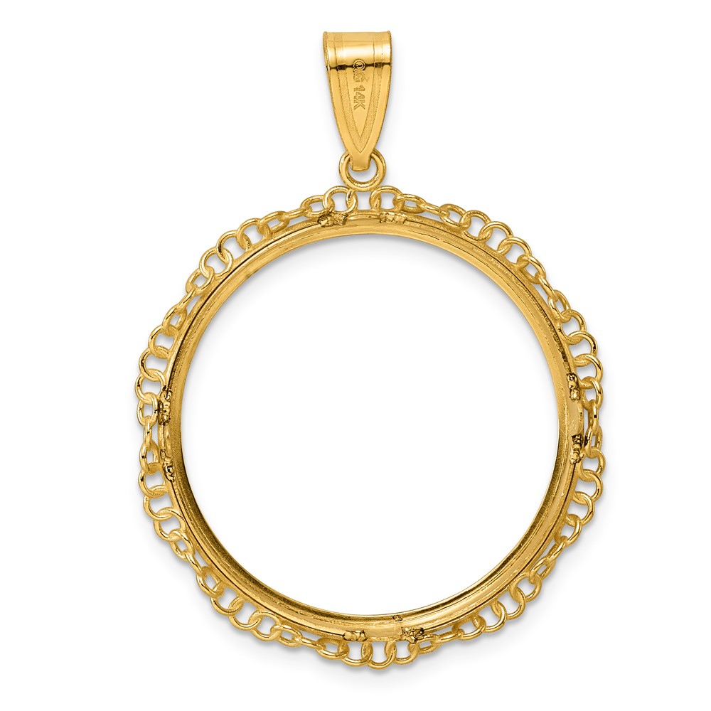 14k Polished Twisted Ring with 27.0mm Prong Coin Bezel Pendant