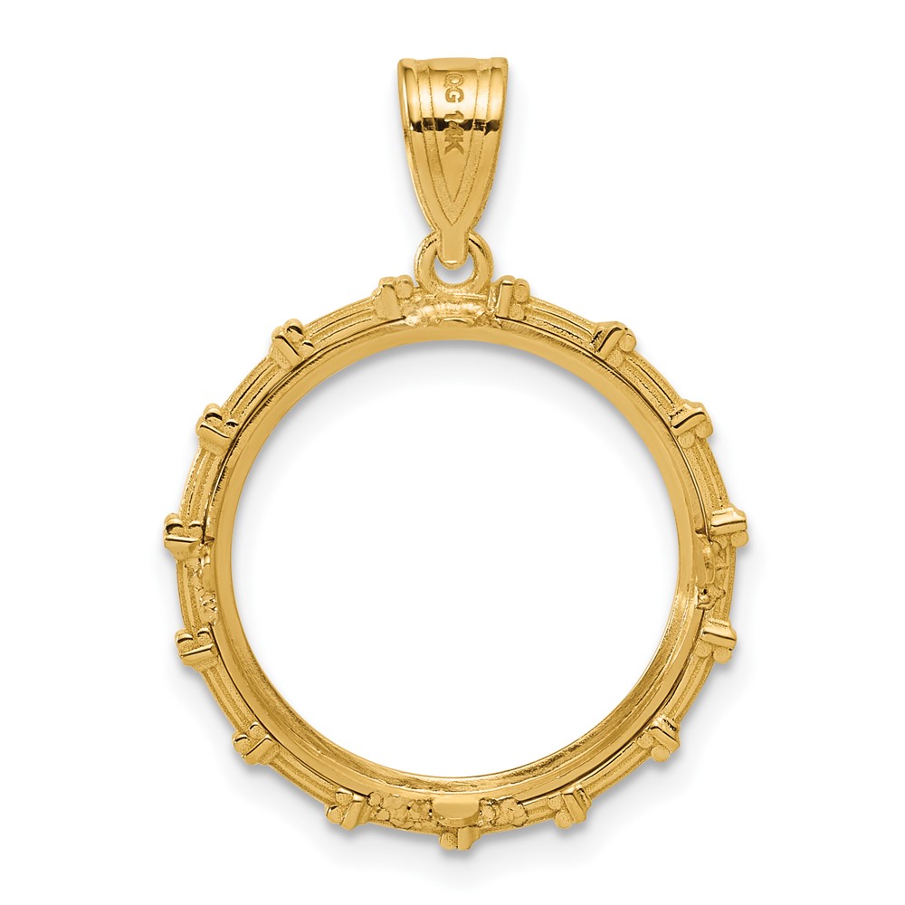 14k Polished Columns with 16.5mm Prong Coin Bezel Pendant