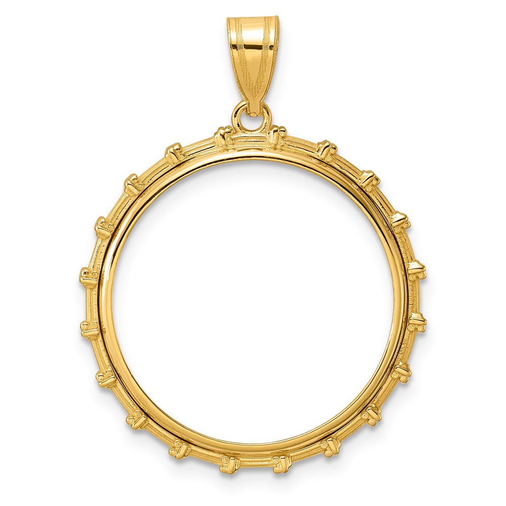 14k Polished Columns with 22.0mm Prong Coin Bezel Pendant