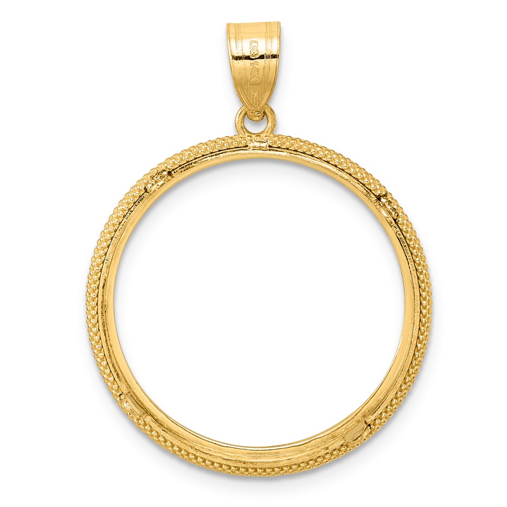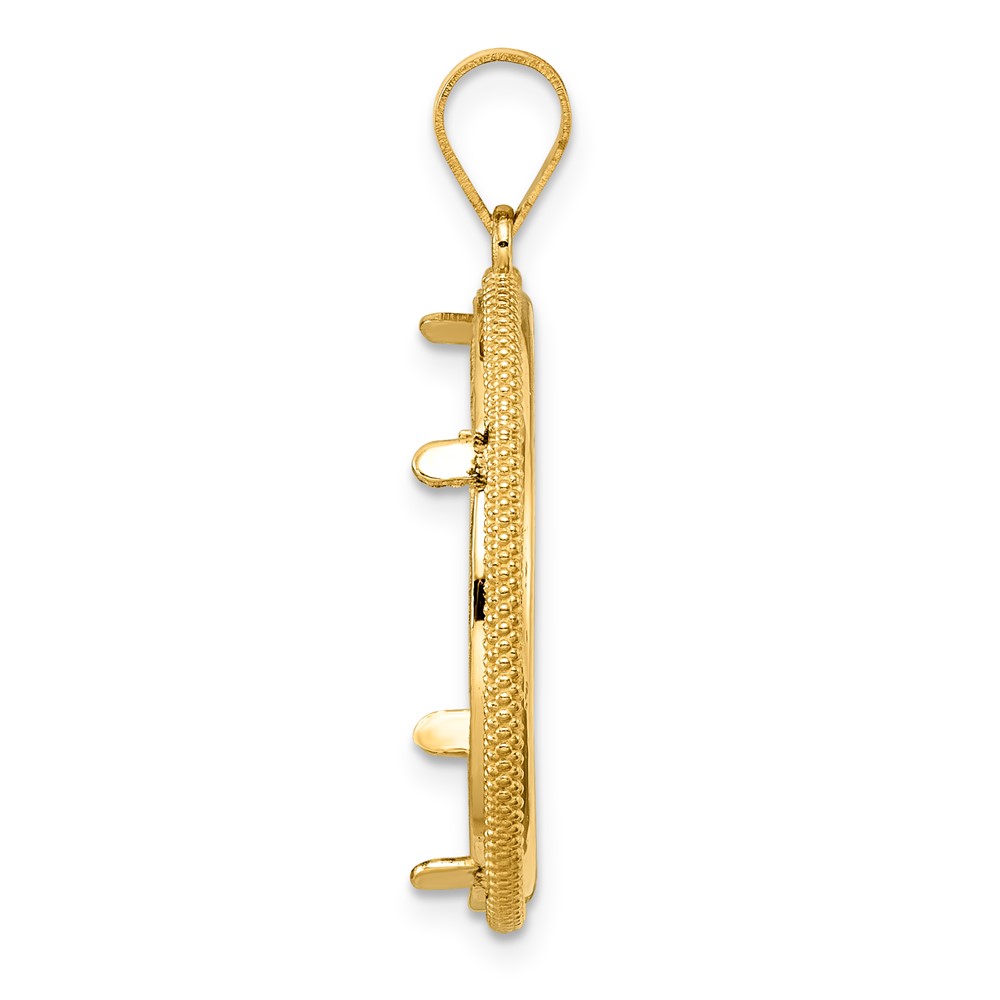 14k Polished Popcorn with 22.0mm Prong Coin Bezel Pendant