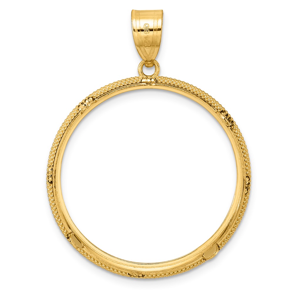 Wideband Distinguished Coin Jewelry 14k Polished and Diamond-cut with Beaded Edge 21.6mm Prong Coin Bezel Pendant