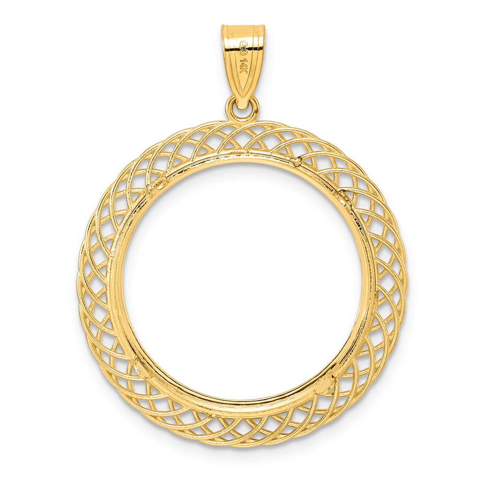 14k Polished Quad Loop with 22.0mm Prong Coin Bezel Pendant