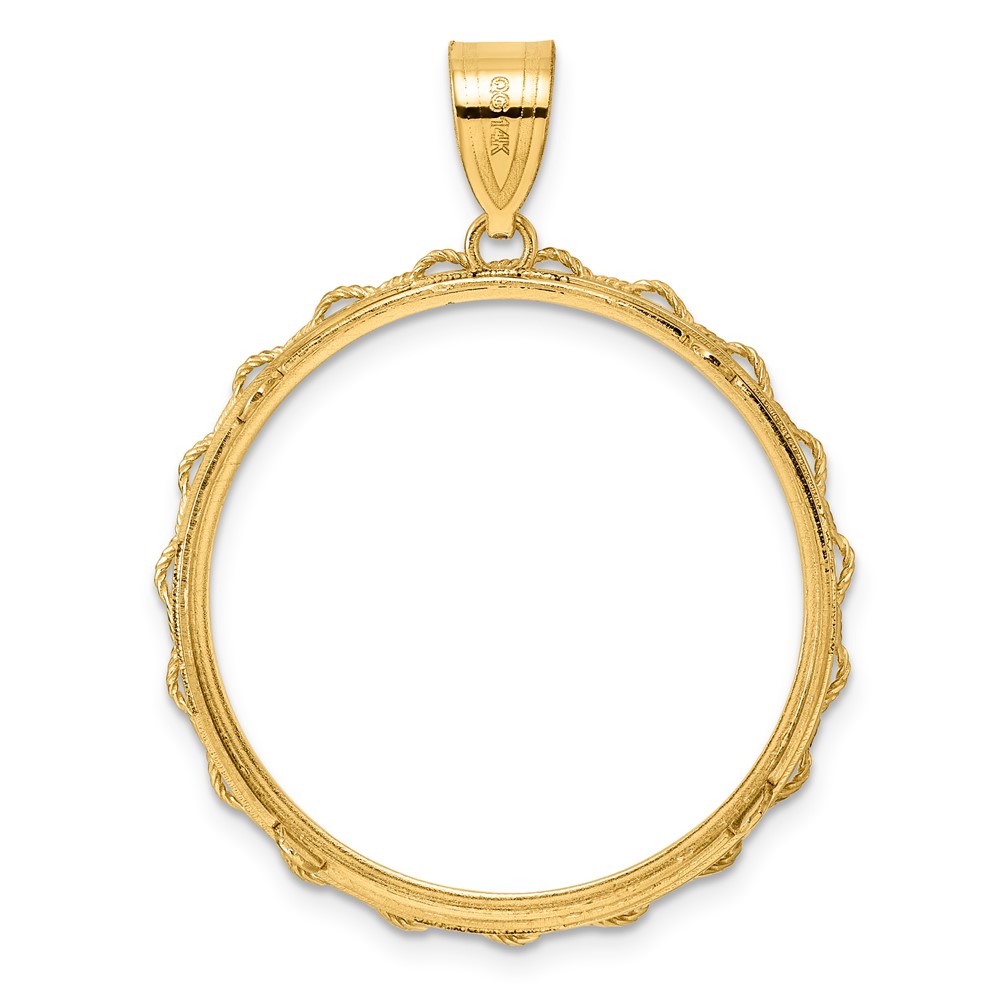 14k Polished Rope with 27.0mm Prong Coin Bezel Pendant