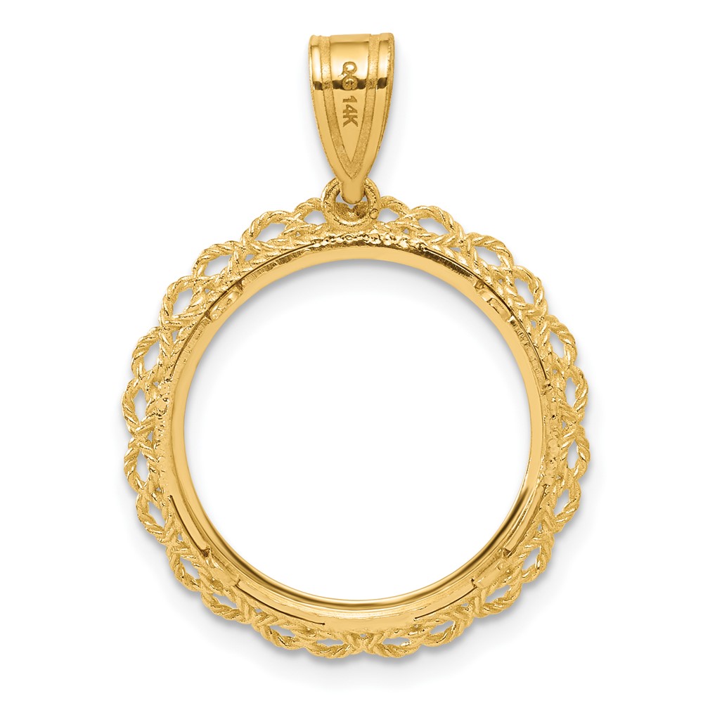 Wideband Distinguished Coin Jewelry 14k White Gold Polished 19.0mm x 1.10mm Screw Top Coin Bezel Pendant