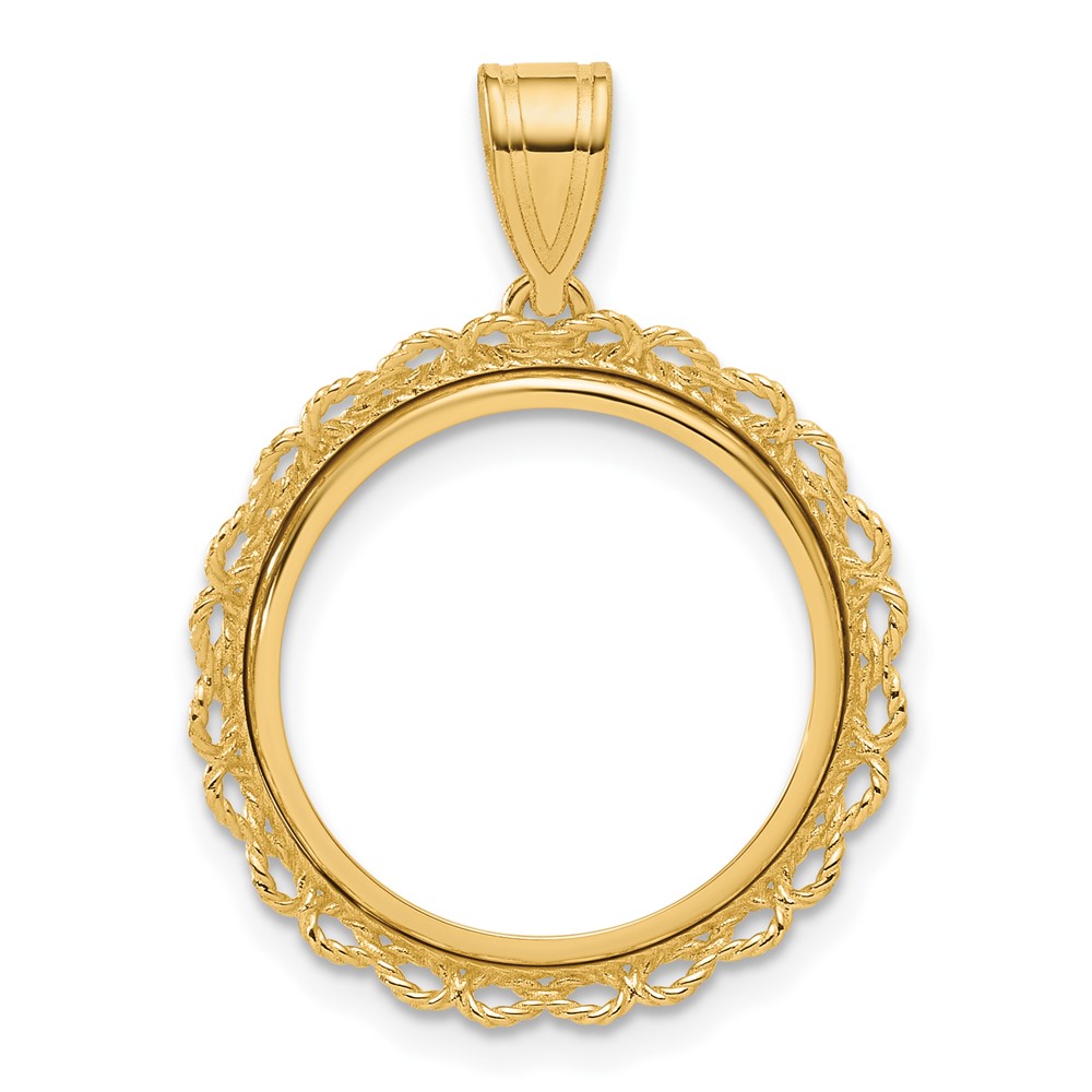 14k Polished Double Rope with 16.5mm Prong Coin Bezel Pendant