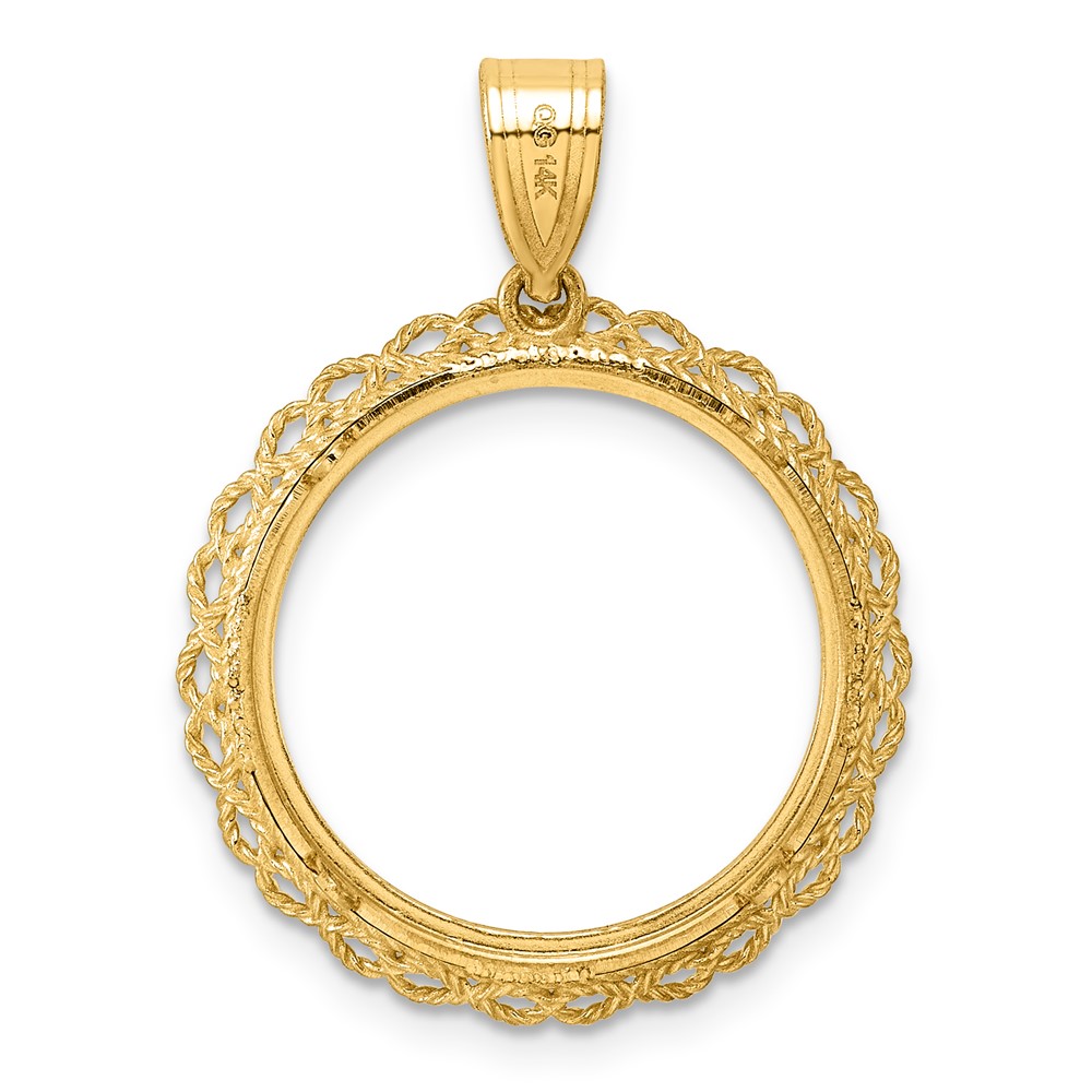 Wideband Distinguished Coin Jewelry 14k Polished and Diamond-cut 30.0mm x 3.00mm Screw Top Coin Bezel Pendant