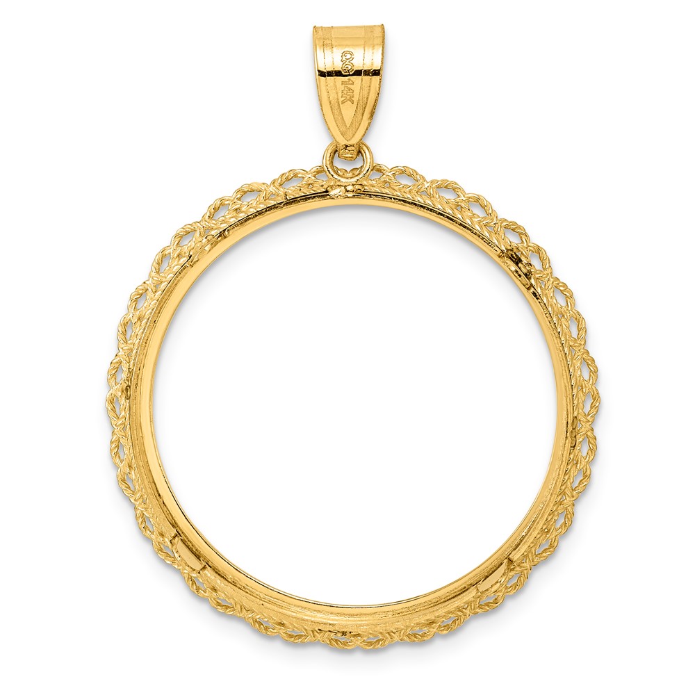 Wideband Distinguished Coin Jewelry 10k Polished and Diamond-cut 16.0mm Prong Coin Bezel Pendant