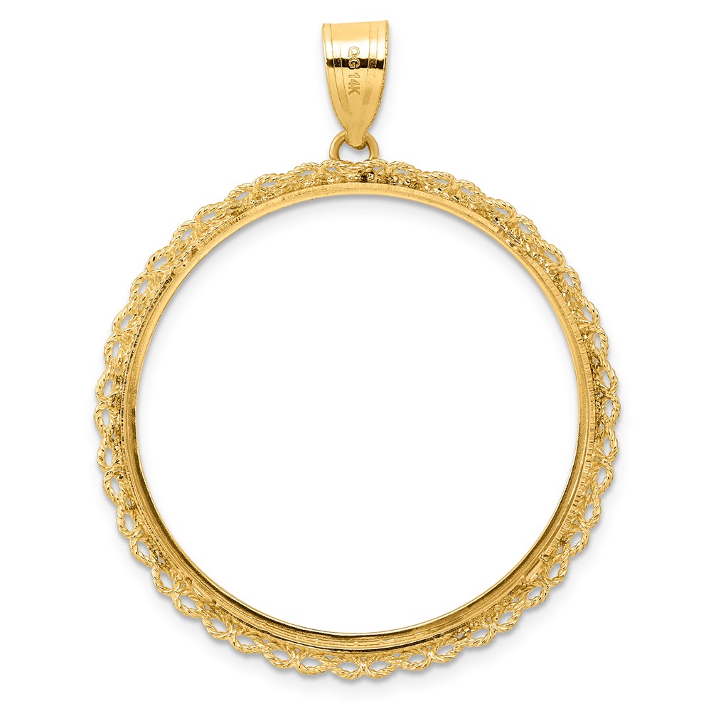 14k Polished Double Rope with 32.0mm Prong Coin Bezel Pendant