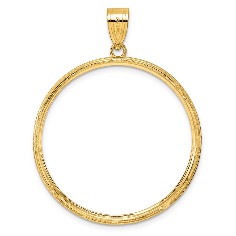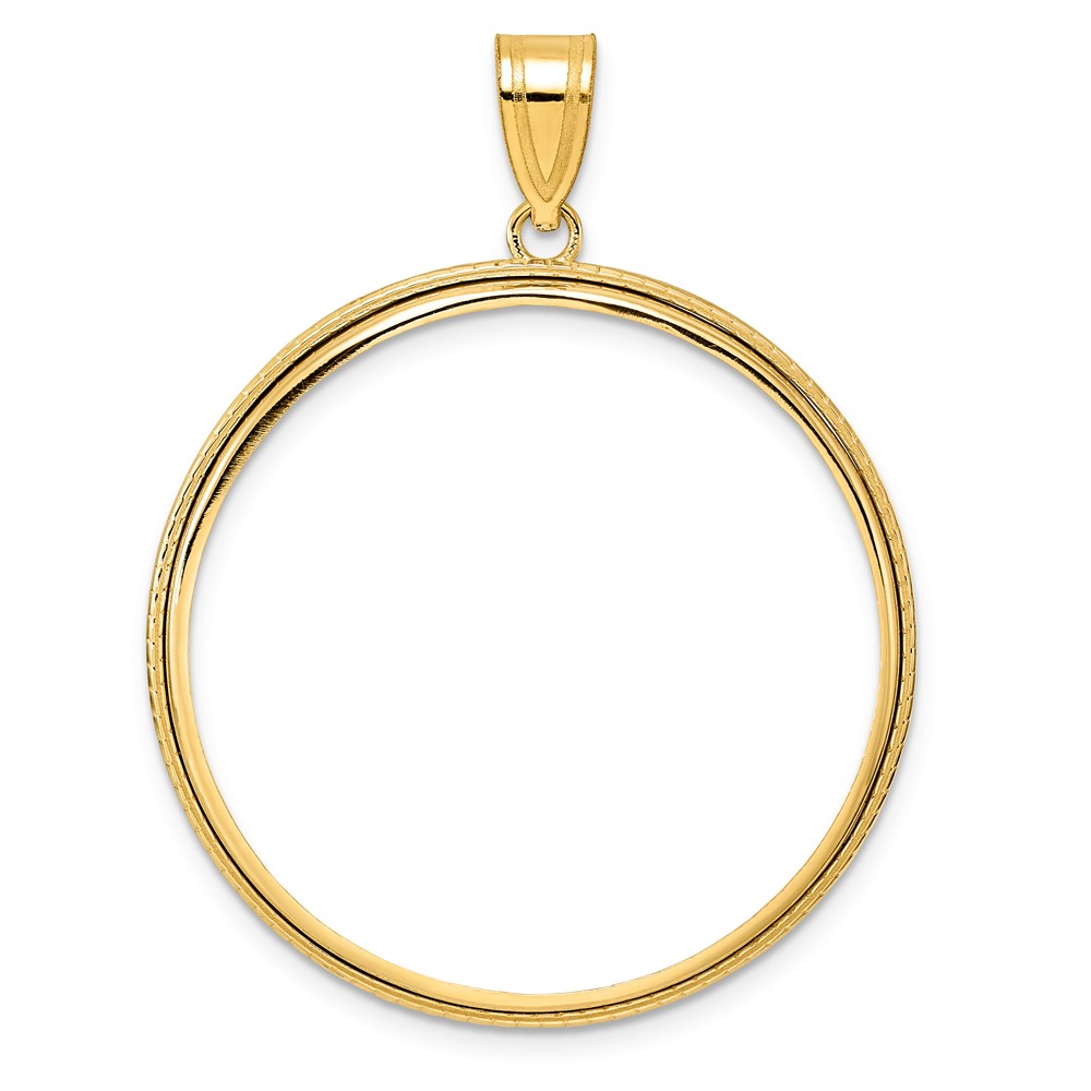 14k Polished Squares with 32.7mm Prong Coin Bezel Pendant