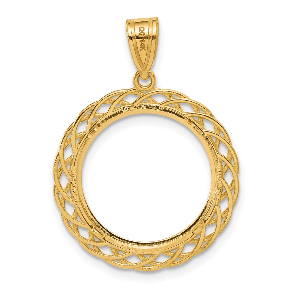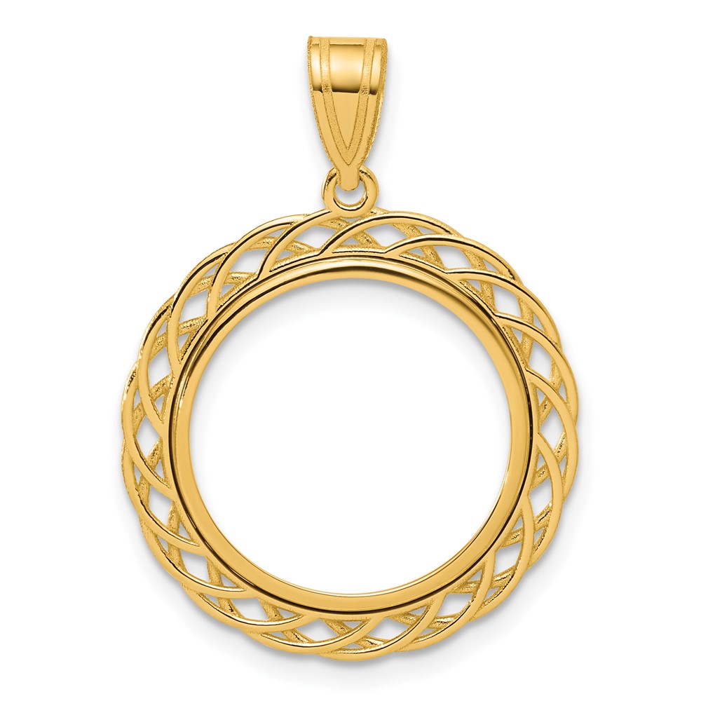 Wideband Distinguished Coin Jewelry 10k Polished Casted Rope 27.0mm x 2.35mm Screw Top Coin Bezel Pendant