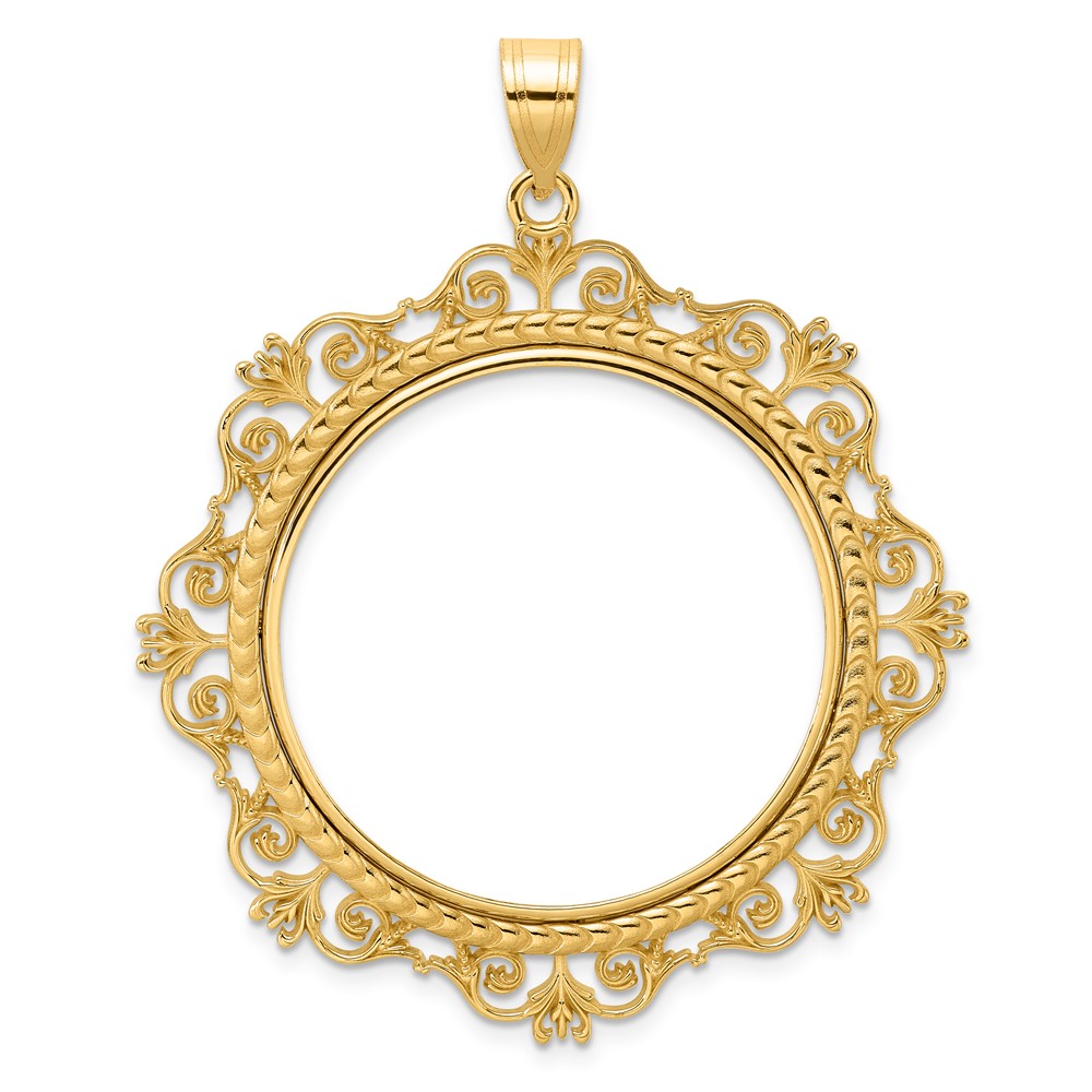 14k Polished Victorian with 32.0mm Prong Coin Bezel Pendant