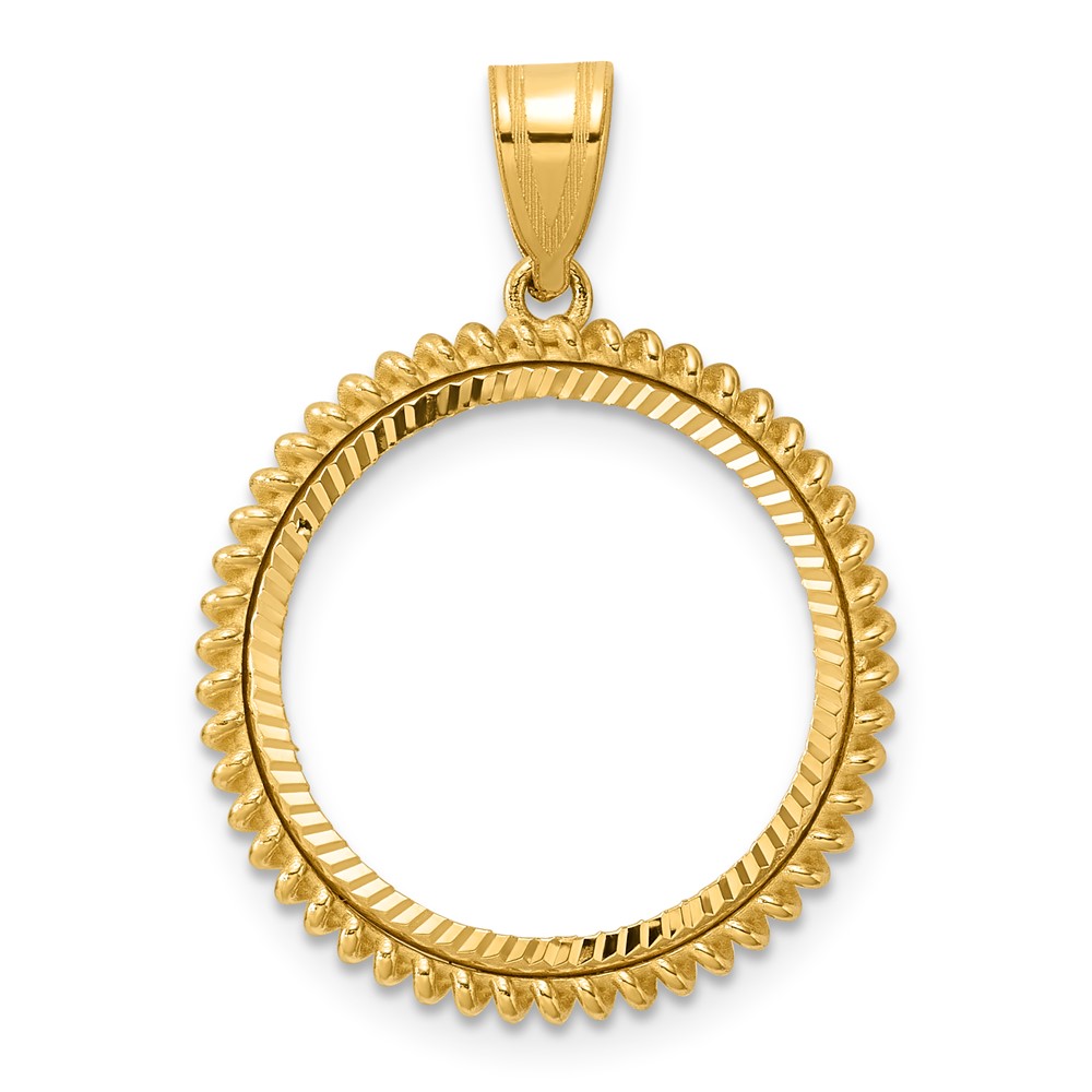 Wideband Distinguished Coin Jewelry 14k Polished Rope and Diamond-cut 15.0mm x 0.8mm Screw Top Coin Bezel Pendant