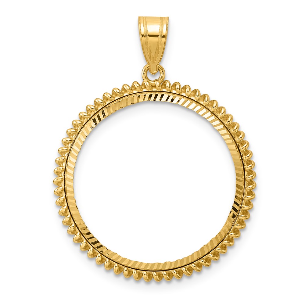 14k Diamond Cut Coil with 22.0mm Prong Coin Bezel Pendant