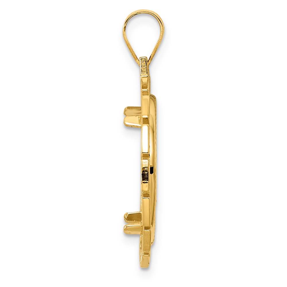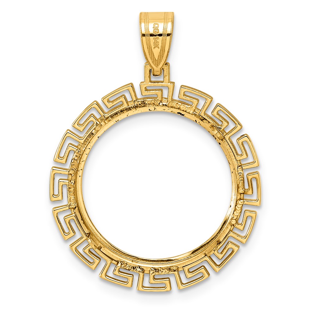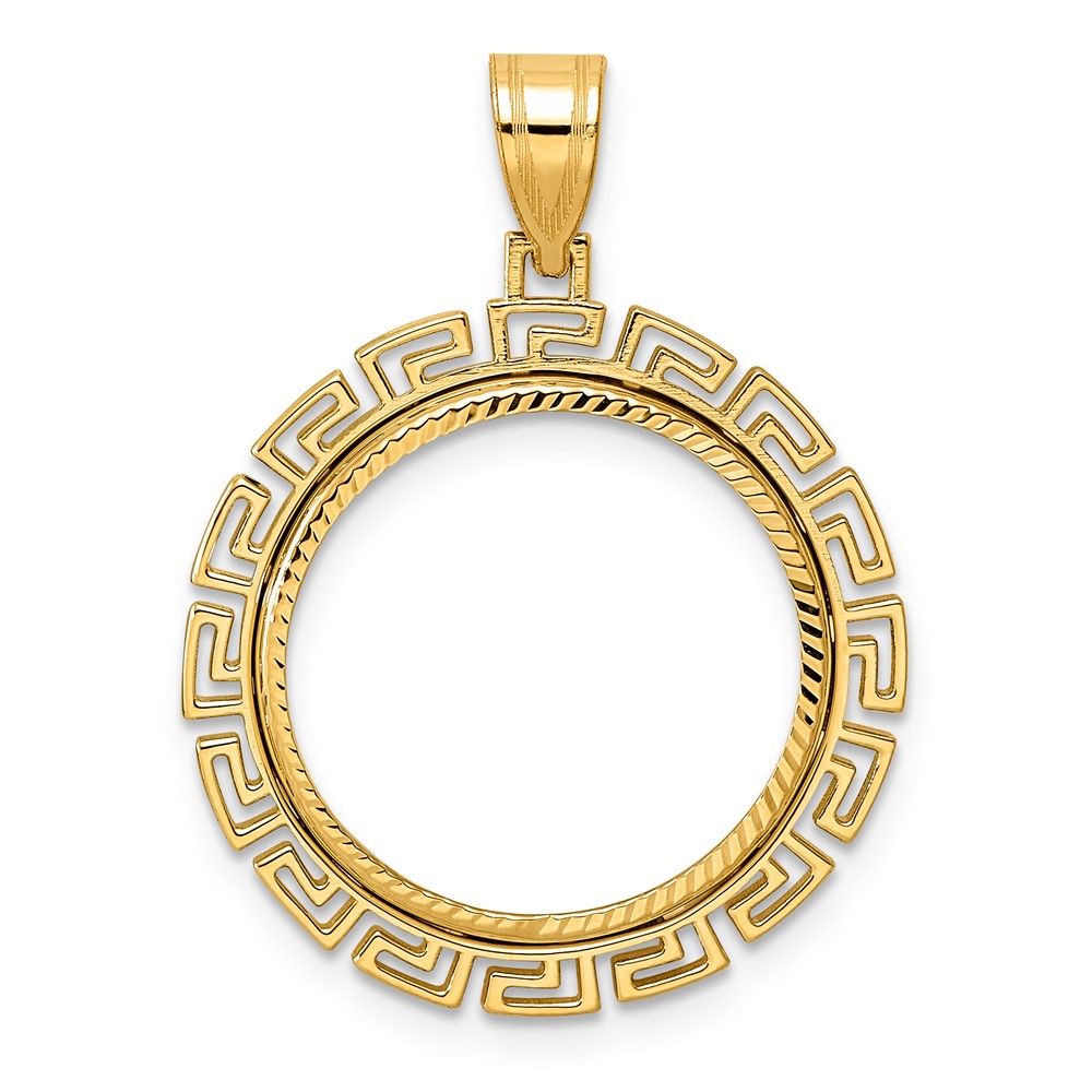 14k Diamond Cut Greek Key with 18.0mm Prong Coin Bezel Pendant