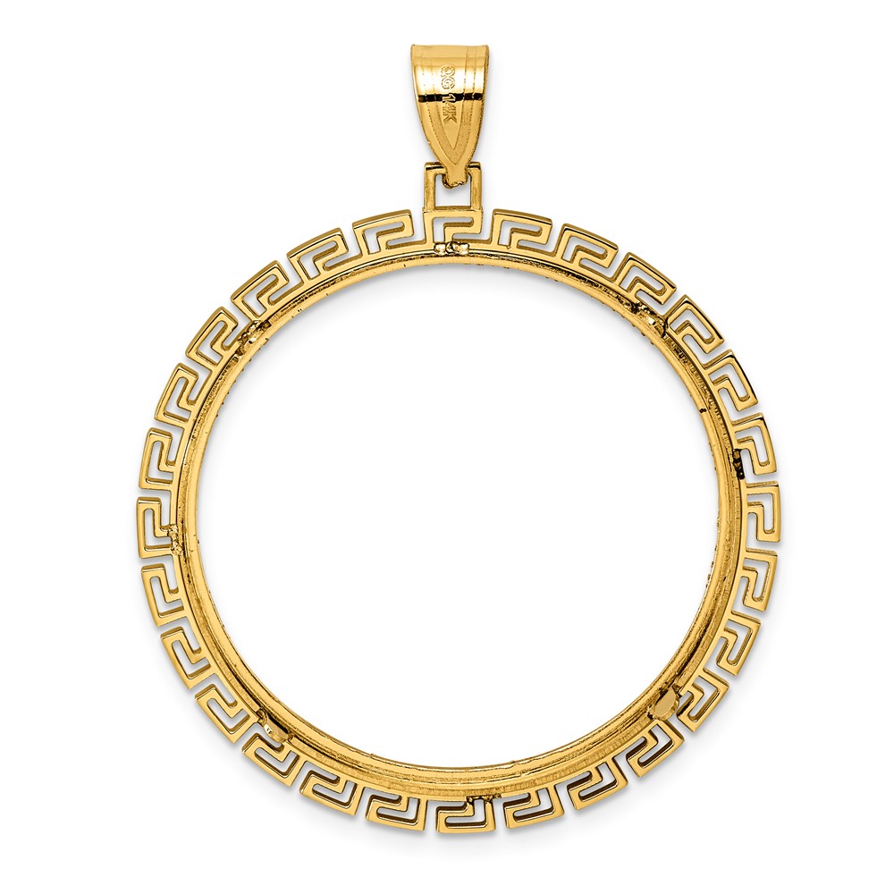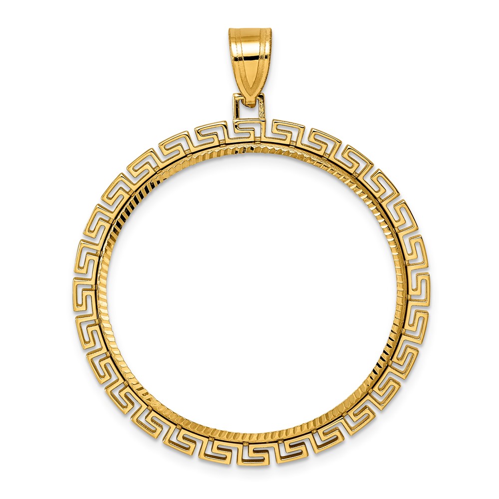 14k Diamond Cut Greek Key with 32.0mm Prong Coin Bezel Pendant