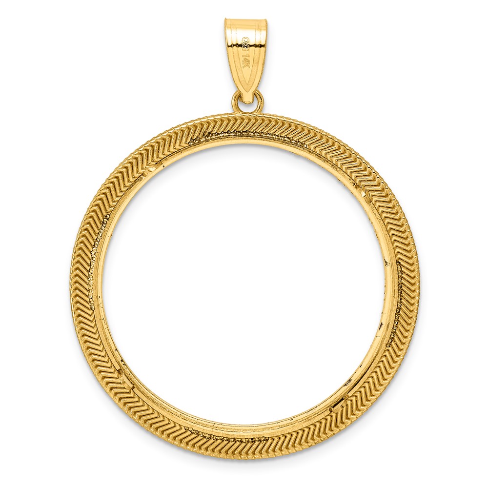 Wideband Distinguished Coin Jewelry 14k Polished Quadruple Twist and Diamond-cut 37.0mm Prong Coin Bezel Pendant
