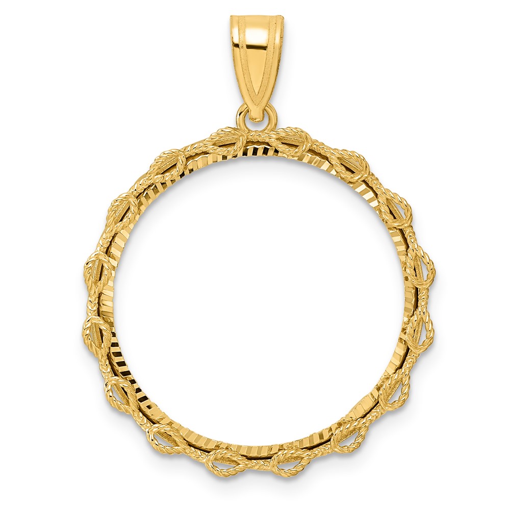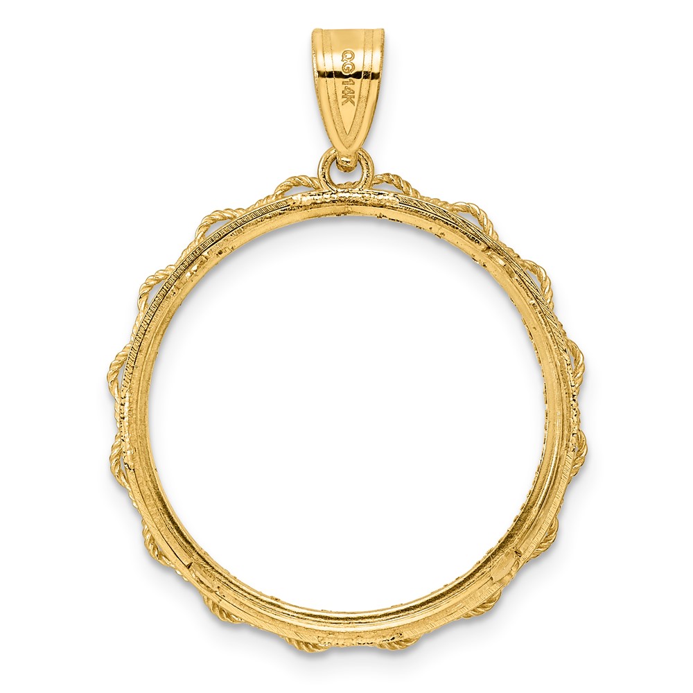 14k Diamond Cut Rope with 22.0mm Prong Coin Bezel Pendant