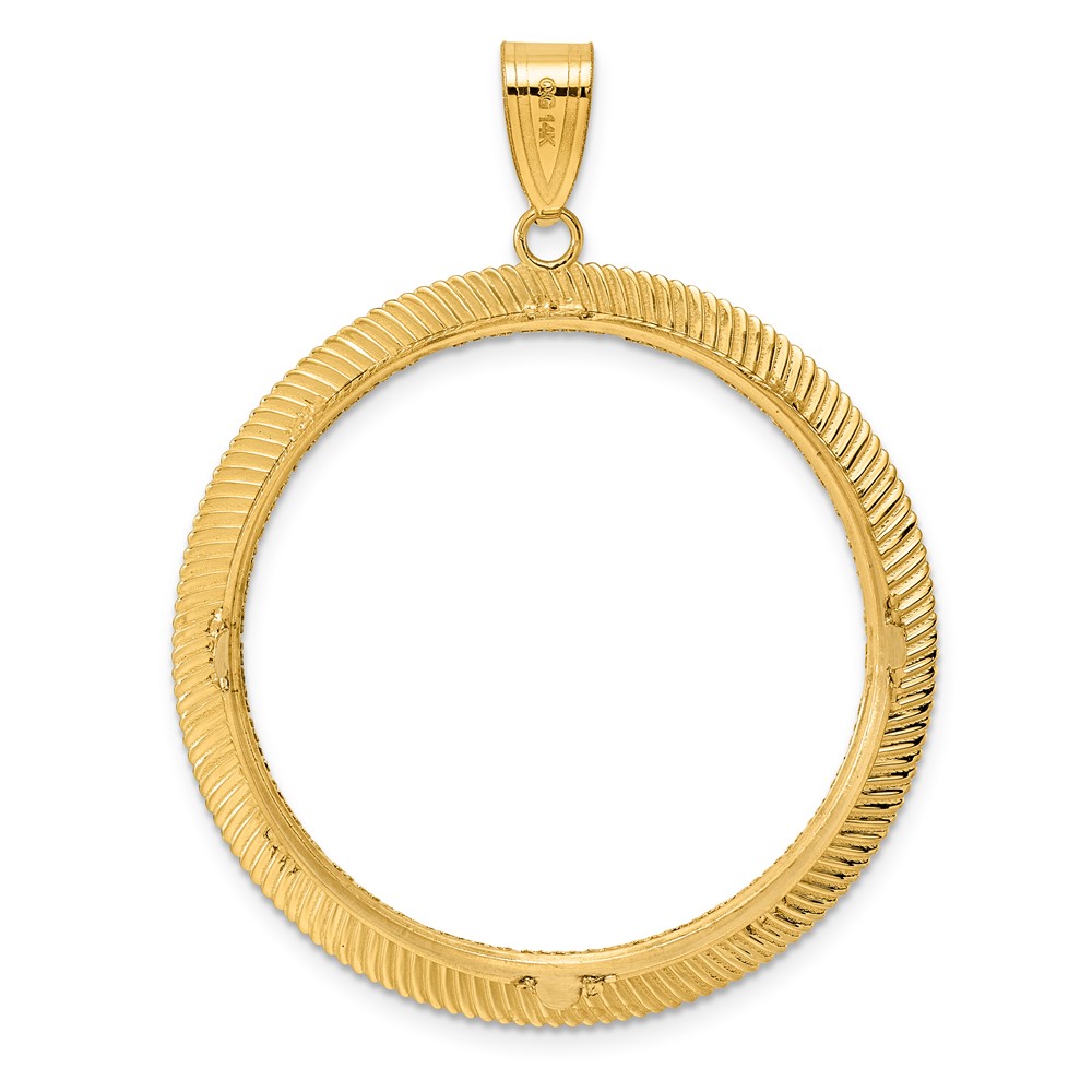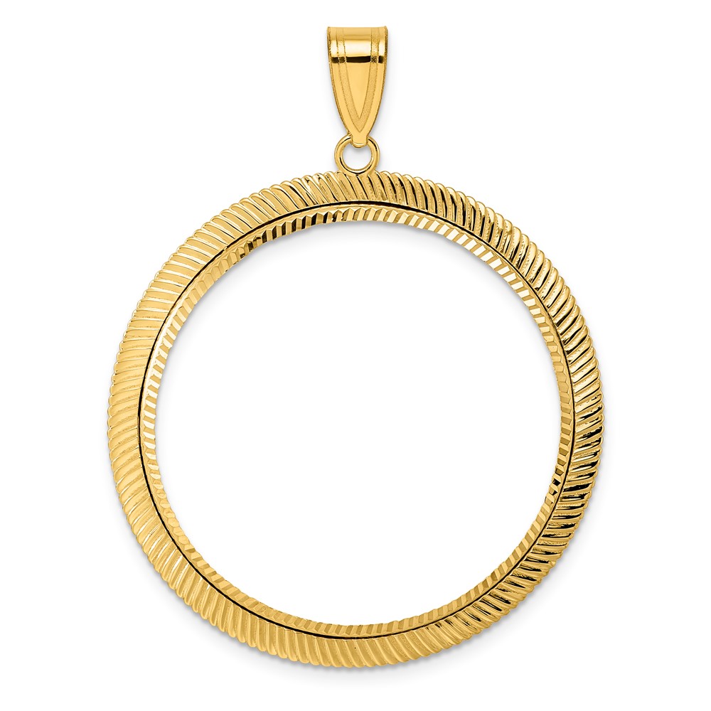 14k Diamond Cut Scalloped with 32.7mm Prong Coin Bezel Pendant