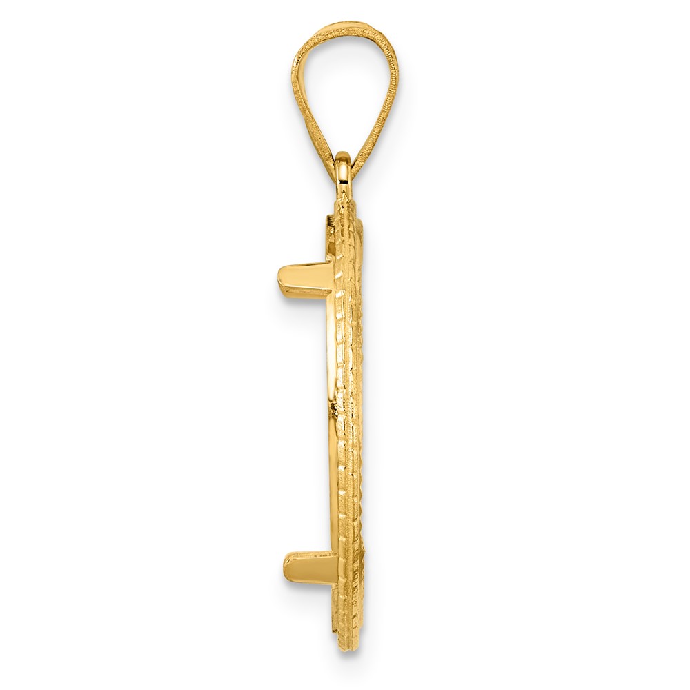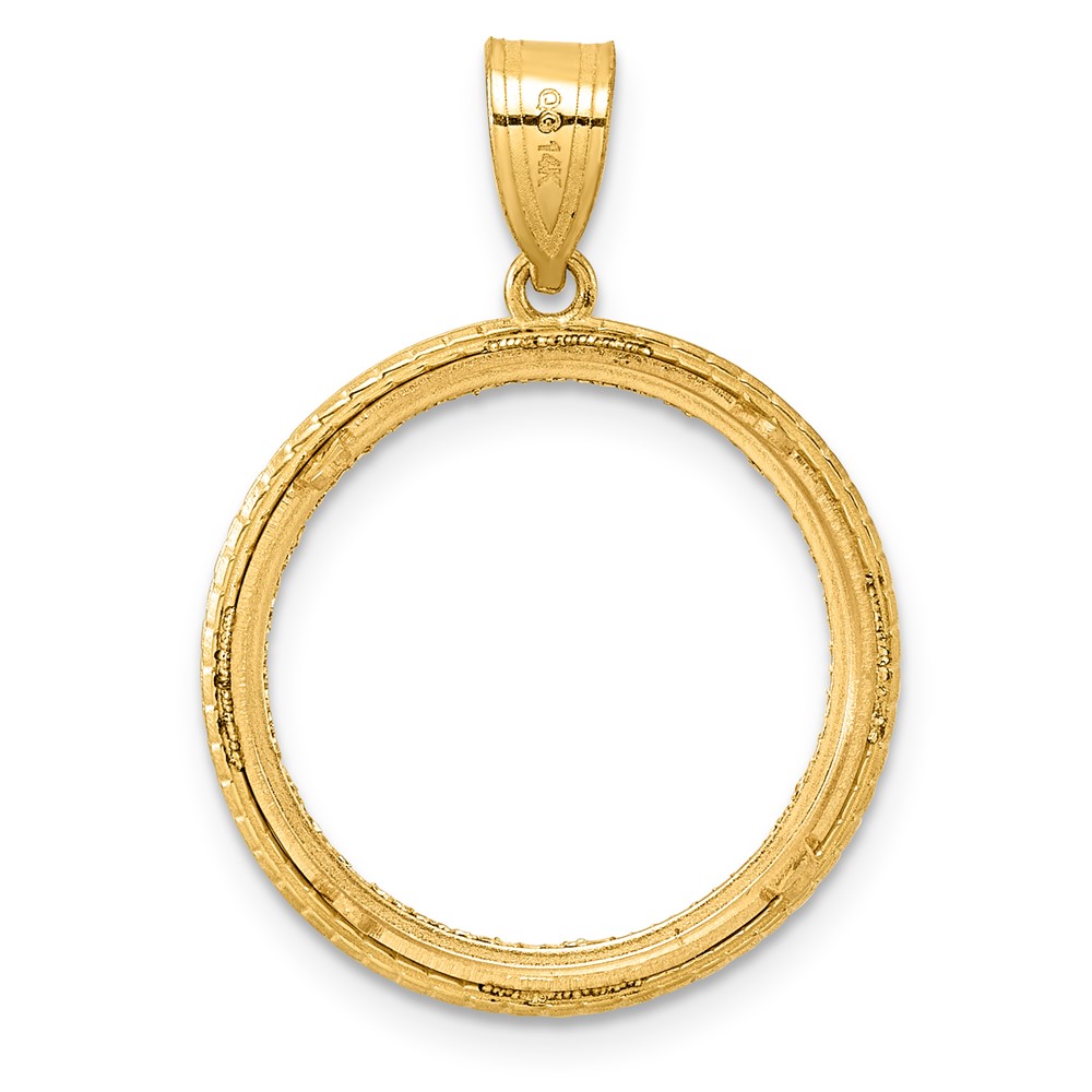 14k Diamond Cut Squares with 18.0mm Prong Coin Bezel Pendant