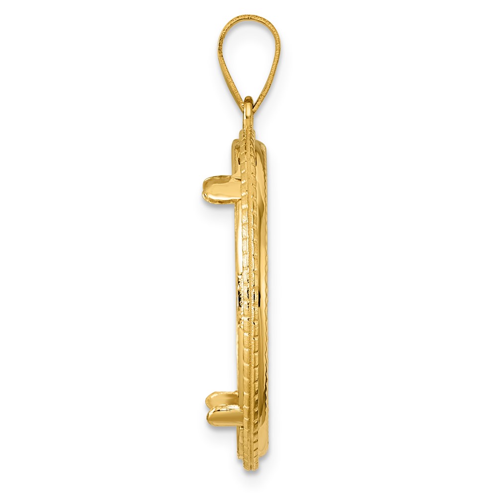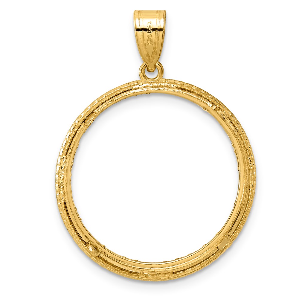 Wideband Distinguished Coin Jewelry 14k Polished and Diamond-cut 15.0mm Prong Coin Bezel Pendant
