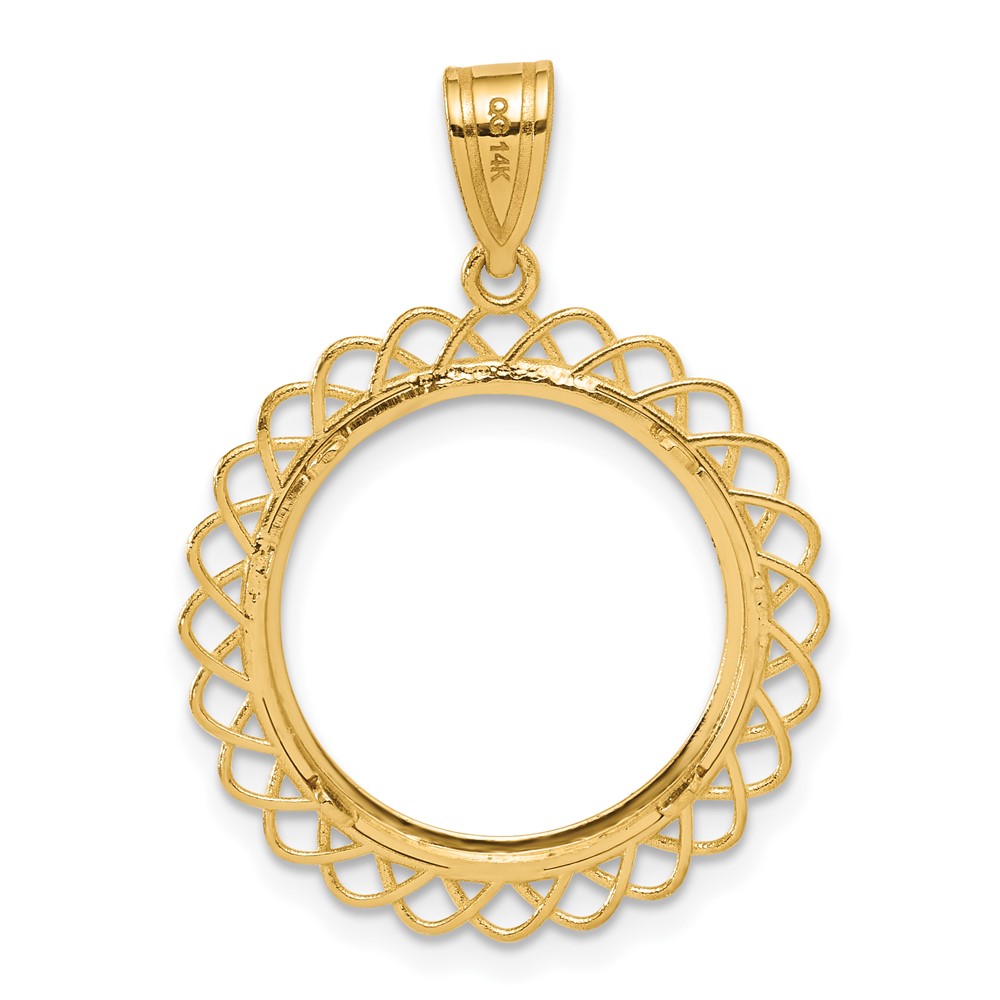 14k Polished Overlapping Singapore with 22.0mm Prong Coin Bezel Pendant