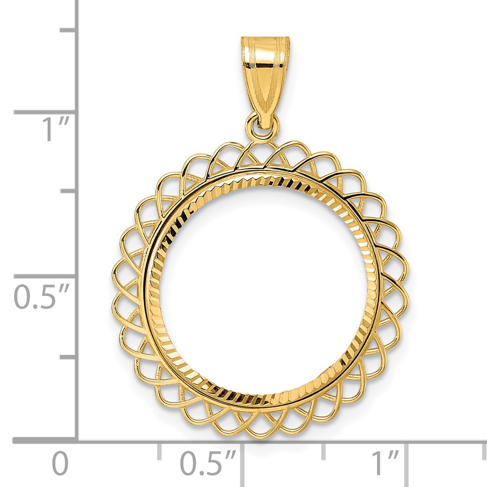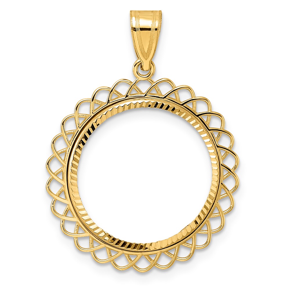 Wideband Distinguished Coin Jewelry 10k Polished and Diamond-cut 19.5mm Prong Coin Bezel Pendant
